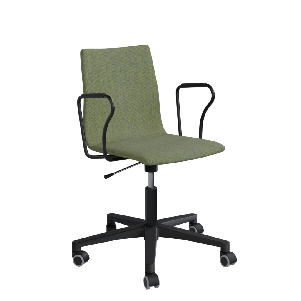 Trevlig har mjukt fjädrande rygg och stoppning med 20 mm högkvalitativt HR kallskum för bästa sitt komfort. 5-vingat kryssstativ finns i utförande med svart nylon alternativt glanspolerad pressgjuten aluminium. Trevlig finns med eller utan armstöd. Se valmöjligheter i länken under Tillbehör/Tillval.